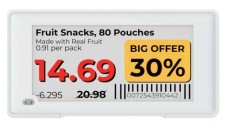 Olvídate de los procesos manuales y propensos a errores. Con las ESL de Hanshow, puedes actualizar precios en cuestión de segundos desde un sistema centralizado. Esto asegura que los precios en los estantes coincidan al 100 % con los mostrados en el sistema de caja, evitando discrepancias que puedan afectar la experiencia del cliente.
